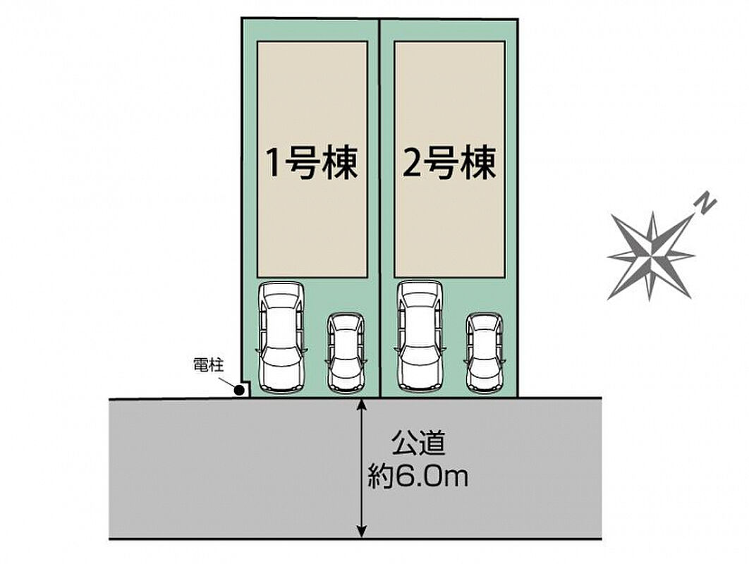| 駐車場 | 2台 | 道路の幅員 | 東南6.0m公道 |