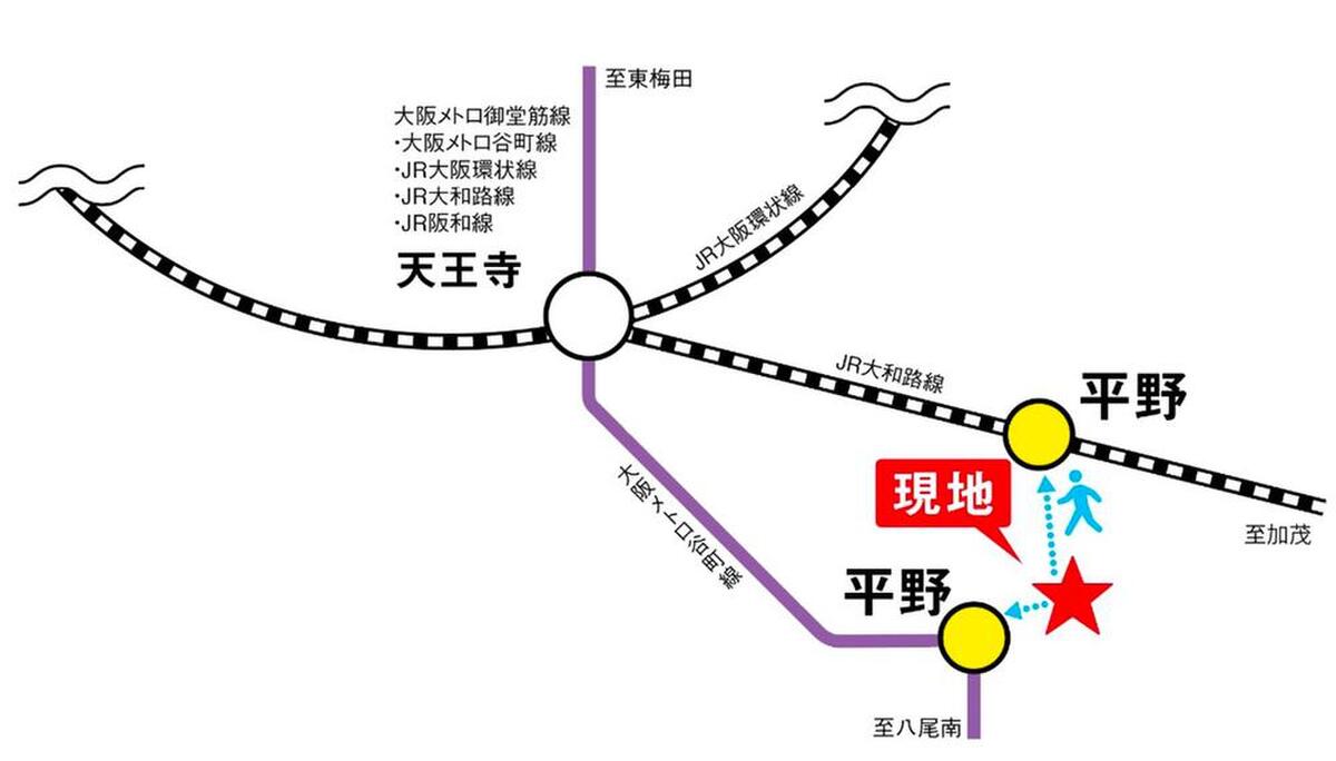 - Osaka Metro谷町線「平野」駅 徒歩4分JR関西本線「平野」駅 徒歩13分Osaka Metro御堂筋線「天王寺」駅 大阪シティバス17分「平野東二丁目」停留所 徒歩8分