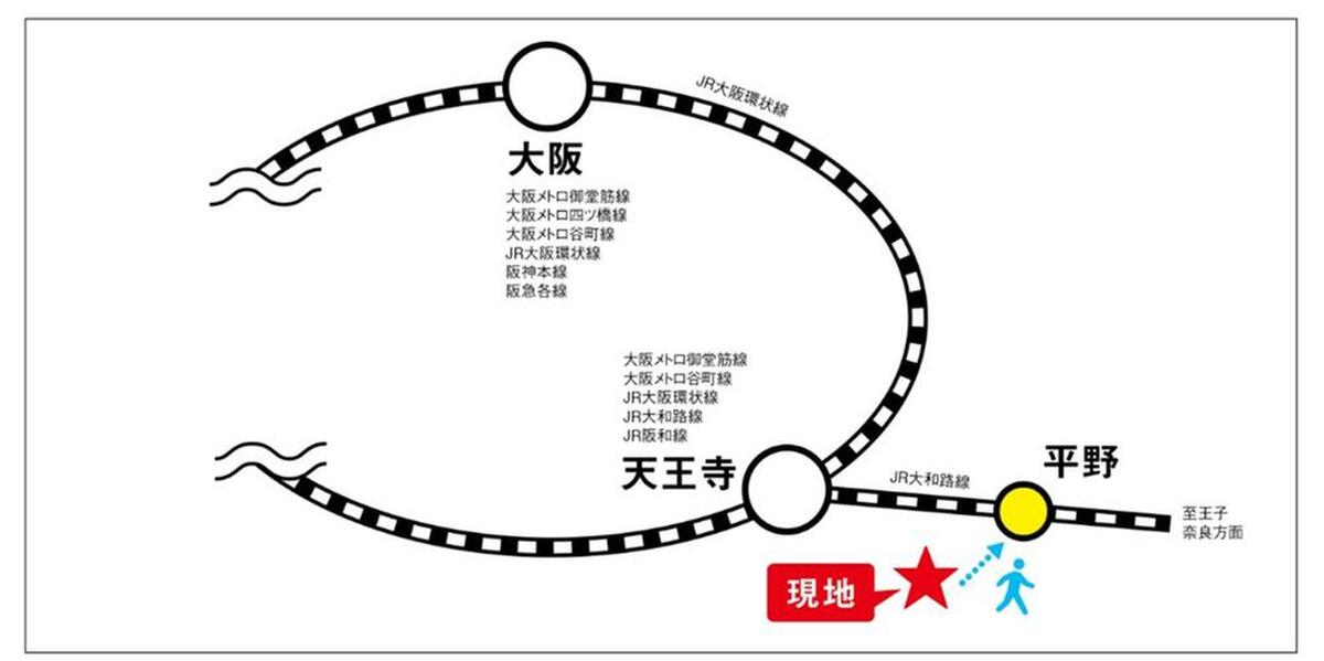 JR大阪環状線「天王寺」駅 大阪シティバス10分「育和公園前」バス停 徒歩5分 Osaka Metro御堂筋線「天王寺」駅 大阪シティバス10分「育和公園前」バス停 徒歩5分 JR関西本線「東部市場前」駅 徒歩13分 |
