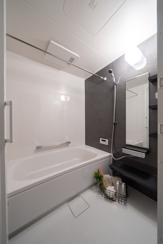 浴室乾燥機付きで、天候や時間に関わらず洗濯物を気持ちよく乾かすことができます。浴槽側には手摺りが備わっており、滑りやすい浴槽への出入りをサポートします。