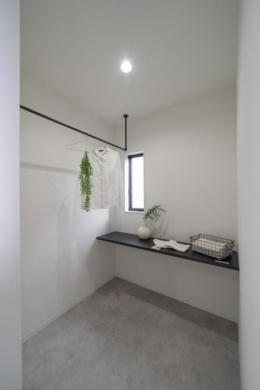 広々としたランドリースペースは、カウンターやハンガーパイプがあり、アイロンがけなど洗濯に関する家事をまとめて行えます。