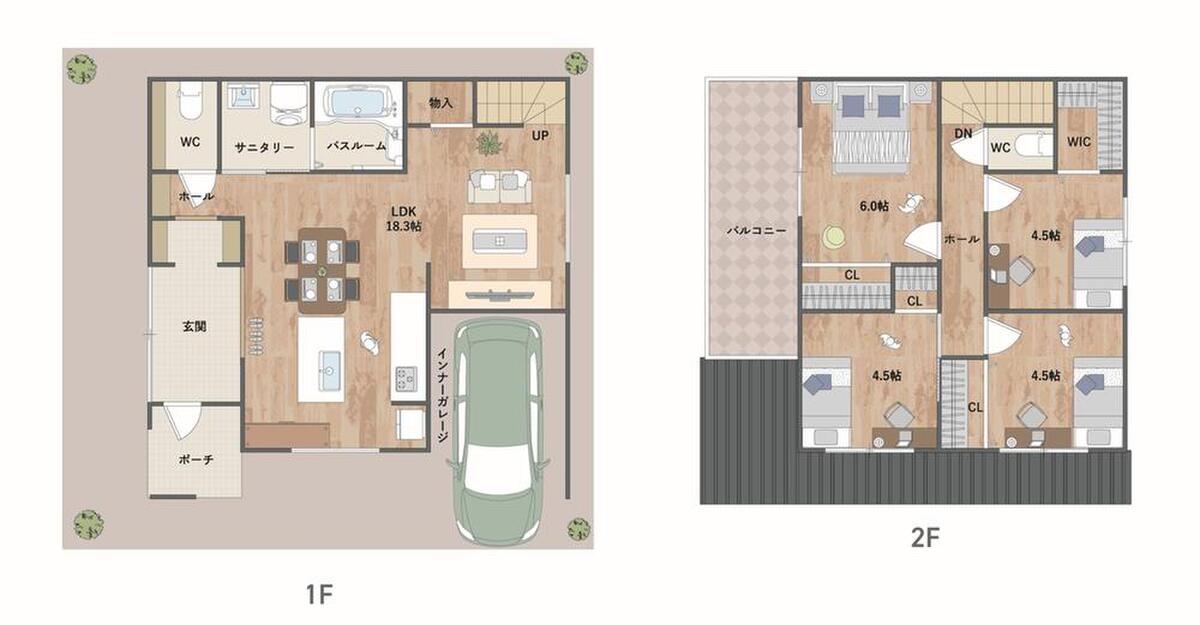 - ※完成予想図やCG合成画像は、門塀・植栽・庭・外観等、実際とは多少異なる場合があります。