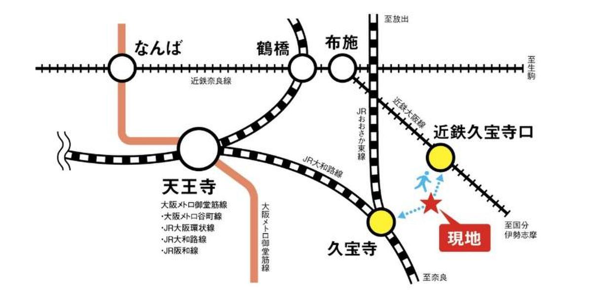 近鉄大阪線「久宝寺口」駅 徒歩10分 JR関西本線「久宝寺」駅 徒歩12分 近鉄大阪線「近鉄八尾」駅 徒歩20分 |