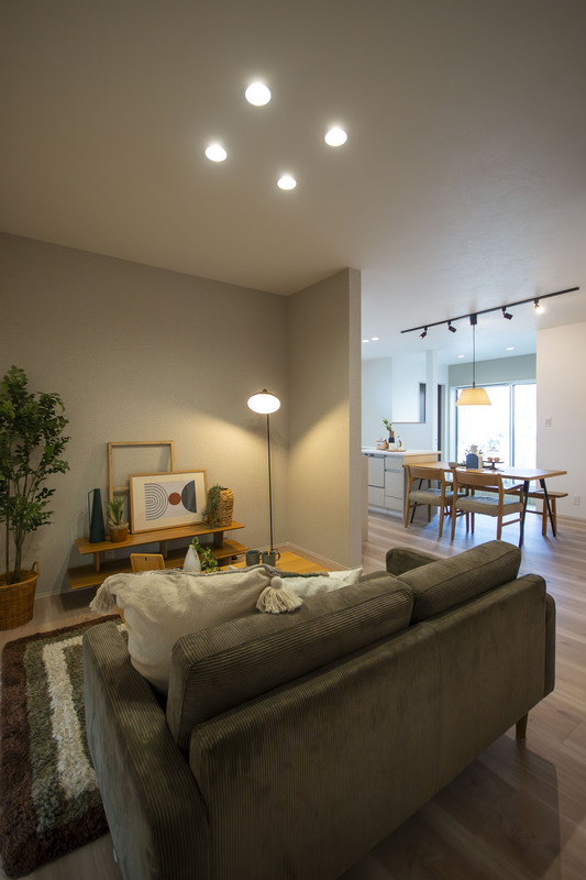 LDKの天井部分にはダウンライトを設置し...