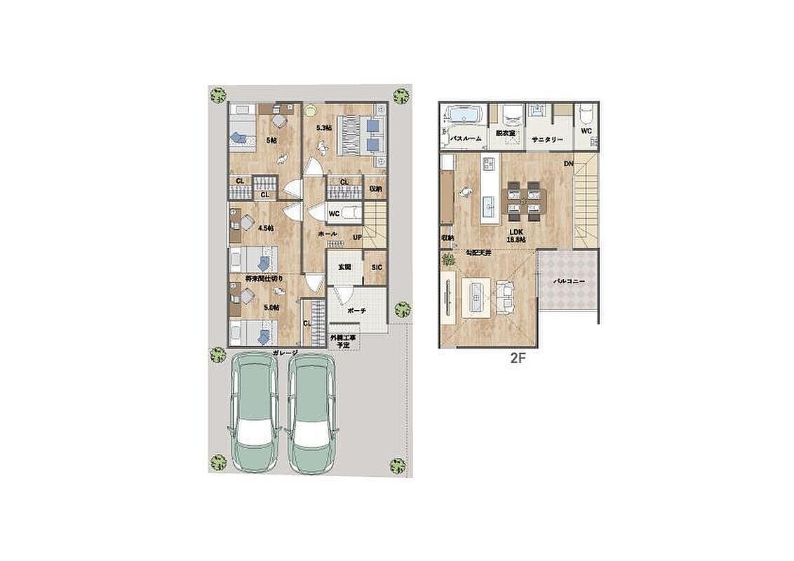 - ※完成予想図やCG合成画像は、門塀・植栽・庭・外観等、実際とは多少異なる場合があります。