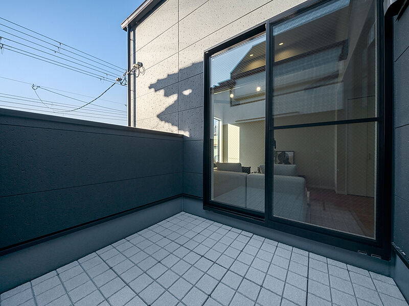 お掃除がしやすいタイル敷きのバルコニーは...