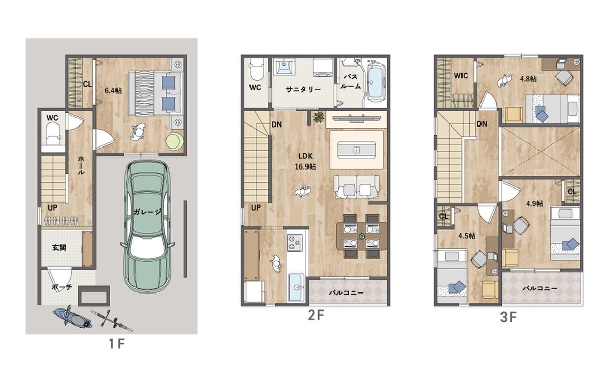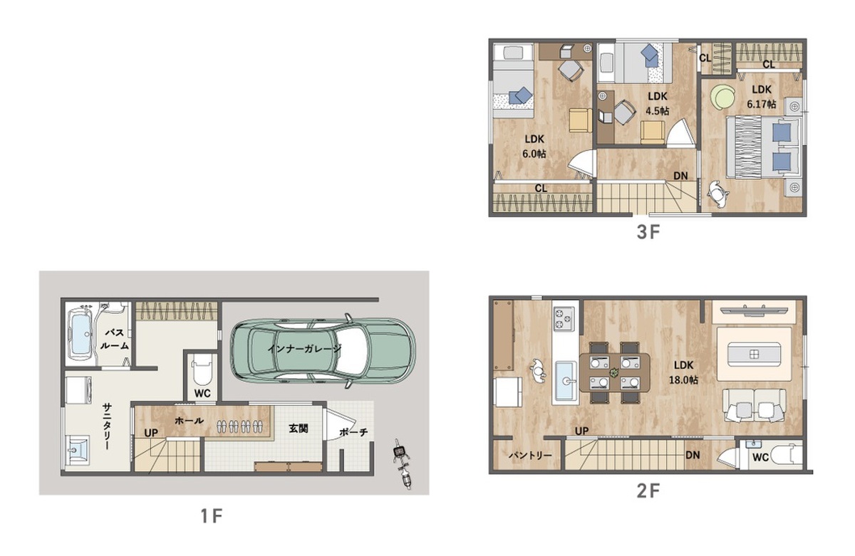- ※完成予想図やCG合成画像は、門塀・植栽・庭・外観等、実際とは多少異なる場合があります。