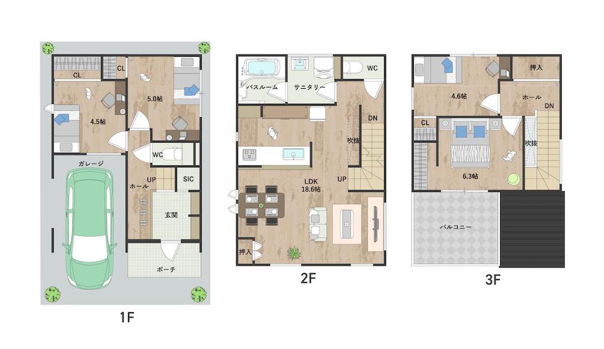 - ※完成予想図やCG合成画像は、門塀・植栽・庭・外観等、実際とは多少異なる場合があります。