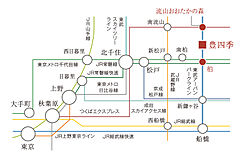 東武アーバンパークライン「豊四季」駅より「北千住」駅へ23分、「上野」駅へ35分、「東京」駅へ45分で到着します。 ※電車の所要時間はいずれも乗換・待ち時間を含んでいます。