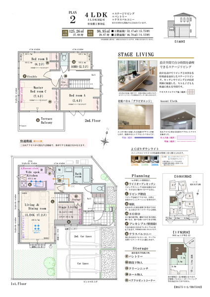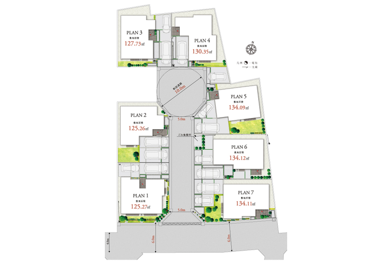 | 建物面積 | 98.95m2~105.85m2 | 土地面積 | 125.26m2~134.12m2 / 私道負担なし |