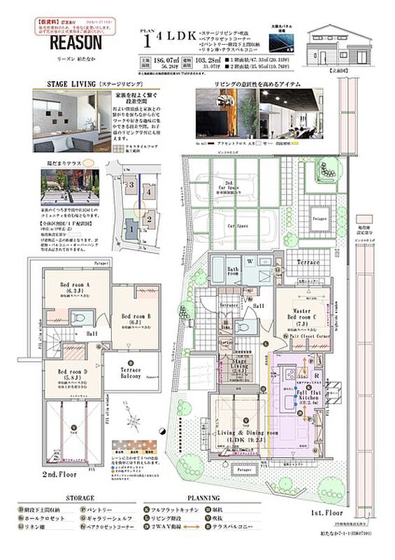 | 建物面積 | 100.81m2~108.79m2 | 土地面積 | 180.51m2~214.1m2 / 私道負担なし |