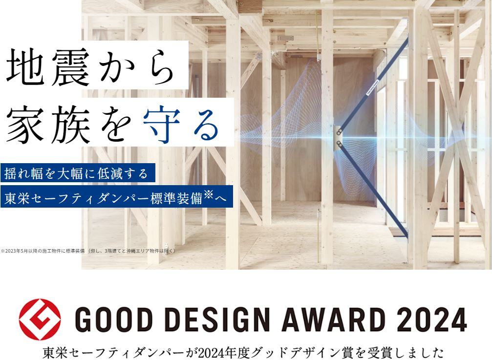 耐震技術に加え「+制震」という揺れを抑える技術「東栄セーフティ―ダンパー」を、東栄を含む三社で共同開発。制震技術は繰り返す地震にこそ効果を発揮します。