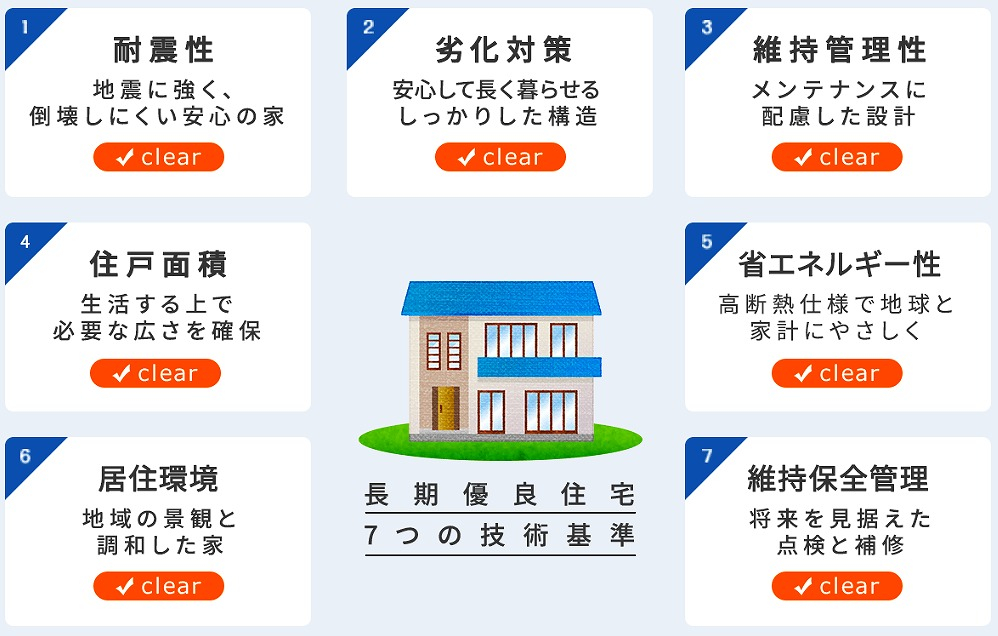 長く住み続けるために、国が定めた7つの技術基準をクリアした認定住宅です。税制優遇などのメリットも。