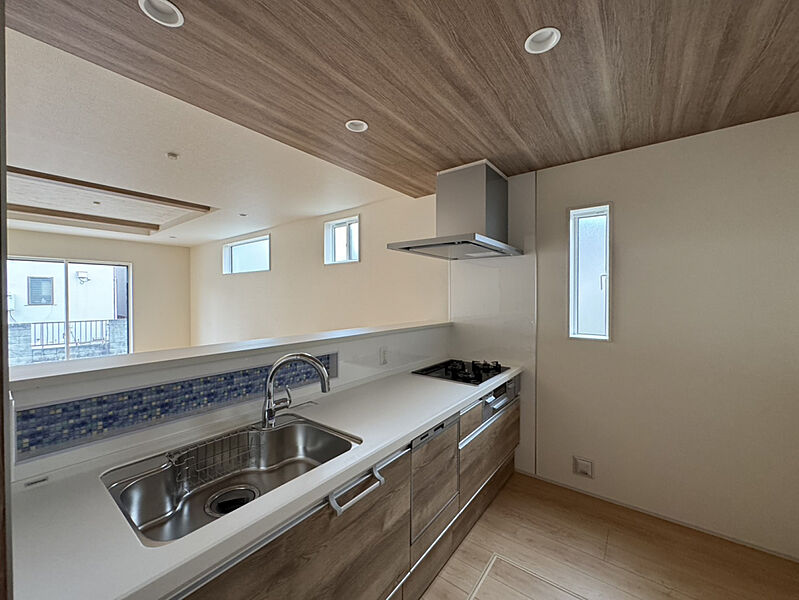 キッチンには、ボタン操作ひとつで油汚れをスッキリ!ビルトインタイプのスマート設計の食器洗浄乾燥機をご用意致しました。