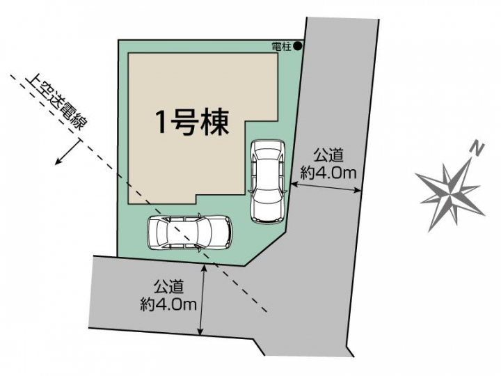 | 駐車場 | 2台 | 道路の幅員 | 東4.0m公道、南4.0m公道 |