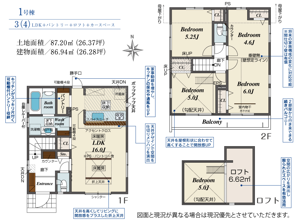 | 建物面積 | 86.94m2(約26.29坪) | 土地面積 | 87.20m2(約26.37坪) |