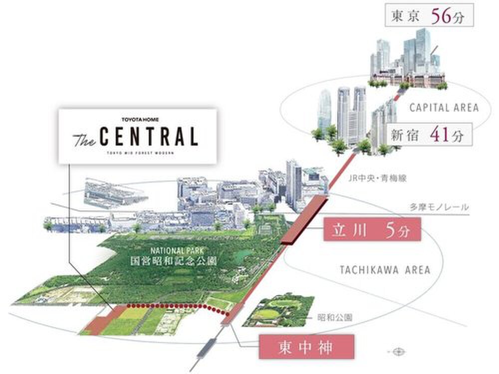 魅力1 広大な国営昭和記念公園に寄り添う、駅徒歩9~13分・全157区画の大規模戸建分譲