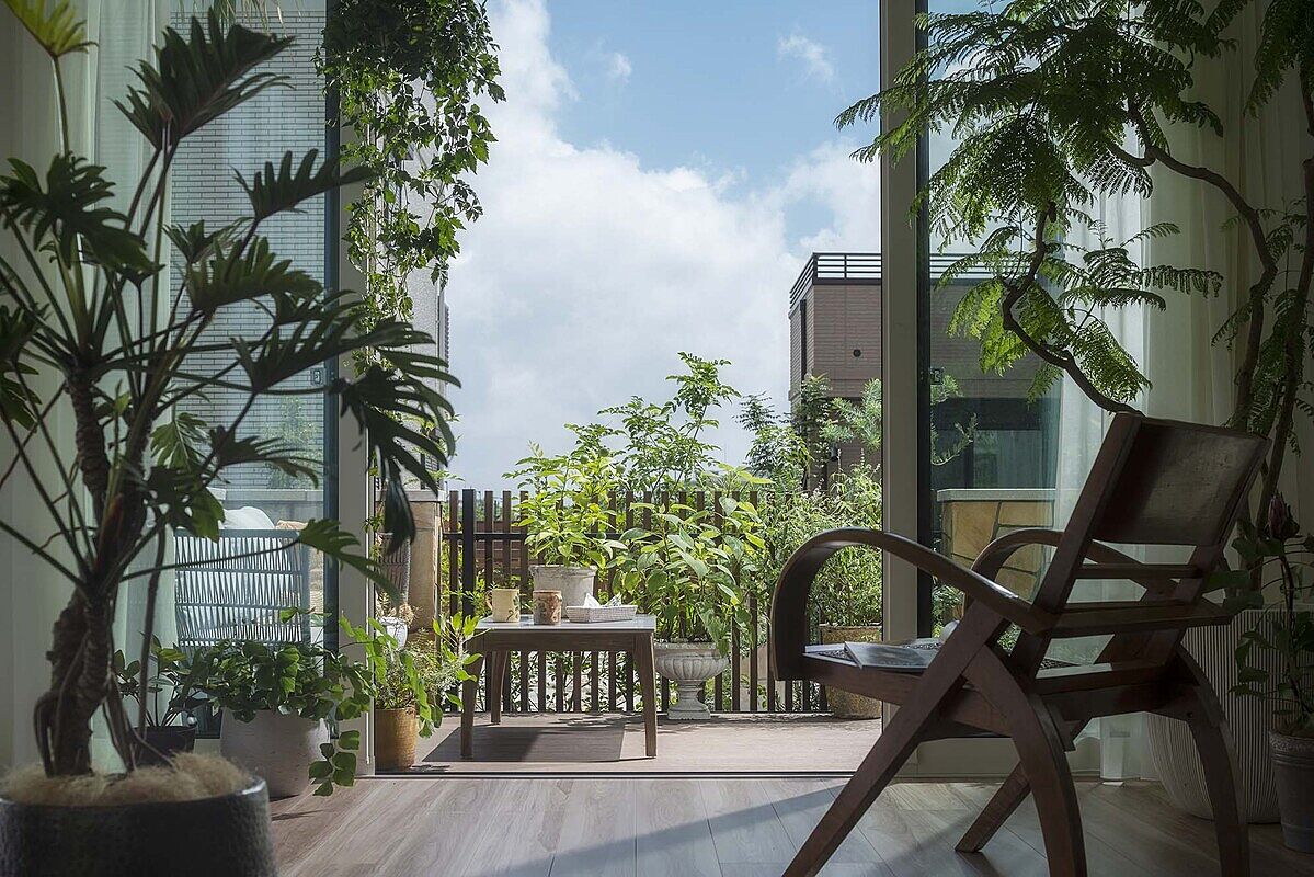 庭の眺めを楽しめる寛ぎの主寝室。リゾート感を演出した洗練の室内...