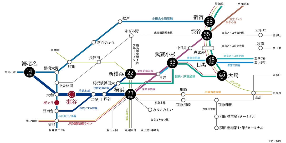 相鉄本線「瀬谷」駅 徒歩23分 小田急江ノ島線「桜ヶ丘」駅 徒歩20分 |