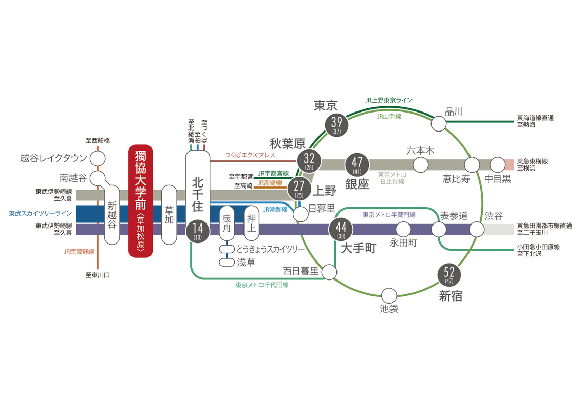 東武伊勢崎線「獨協大学前」駅 徒歩16分~17分 |