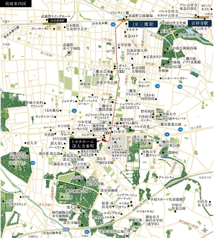 JR中央線「三鷹」駅 バス乗車21分 「航研前」バス停まで徒歩2分 徒歩34分~35分 JR中央線「吉祥寺」駅 バス乗車25分 「航研前」バス停まで徒歩2分 吉祥寺駅/車で約4.9km |