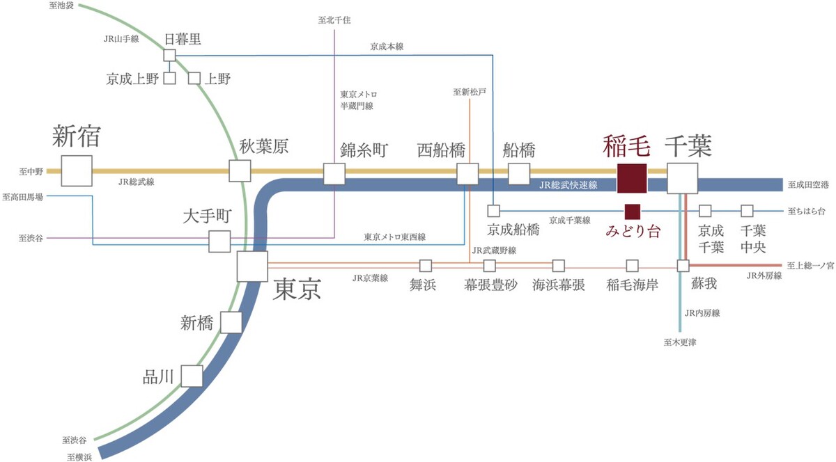 ■都心へ直結!JR総武快速線「稲毛」駅より、「東京」駅37分(34分) 。