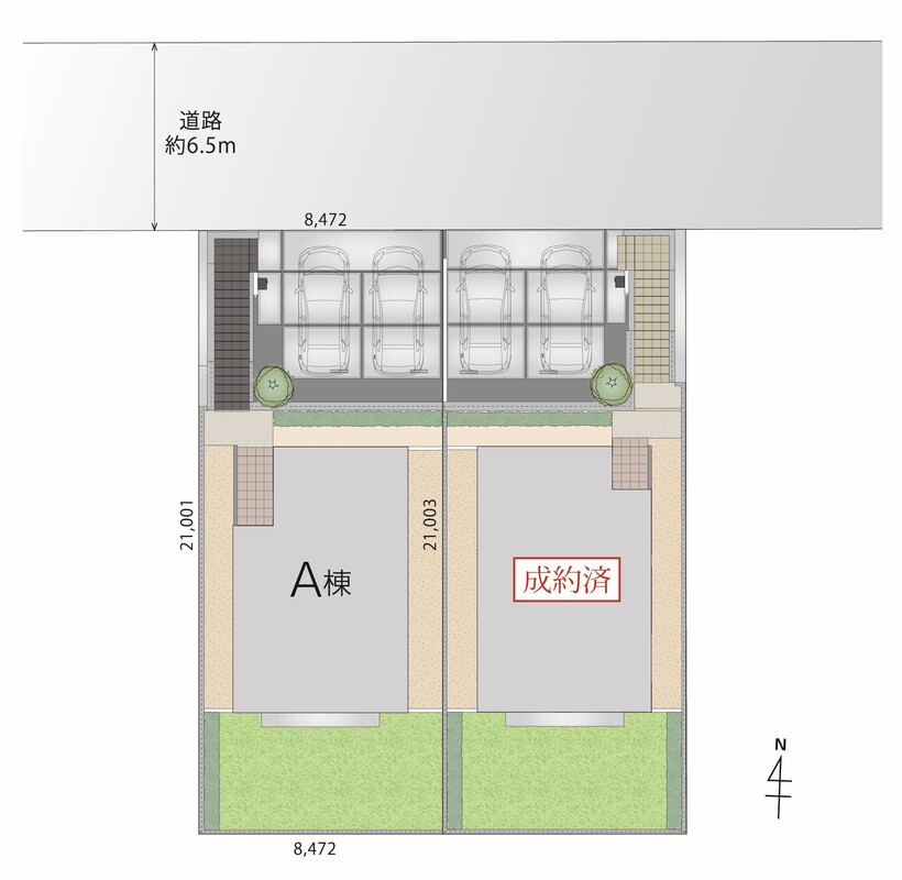 | 駐車場 | 2台 | 道路の幅員 | 北側幅員約6.5m |