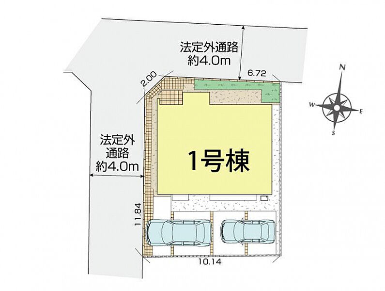 | 駐車場 | 2台 | 道路の幅員 | 北4.0m法定外道路、西4.0m法定外道路 |