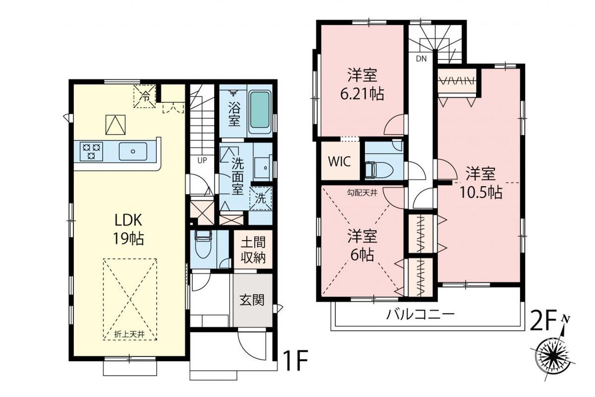 魅力2 2号棟/WIC2箇所とパントリー、土間収納を備えた収納力豊富な間取り