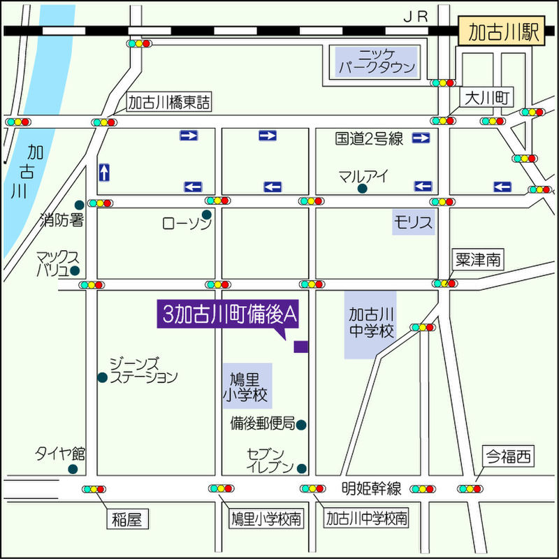 JR山陽本線「加古川」駅 1950m(自転車利用約10分) 山陽電鉄本線「尾上の松」駅 1900m(自転車利用約10分) JR山陽本線「東加古川」駅 5900m |