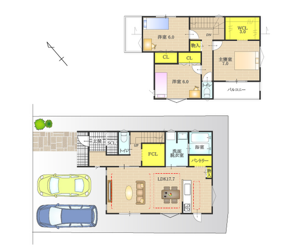 - ※完成予想図やCG合成画像は、門塀・植栽・庭・外観等、実際とは多少異なる場合があります。