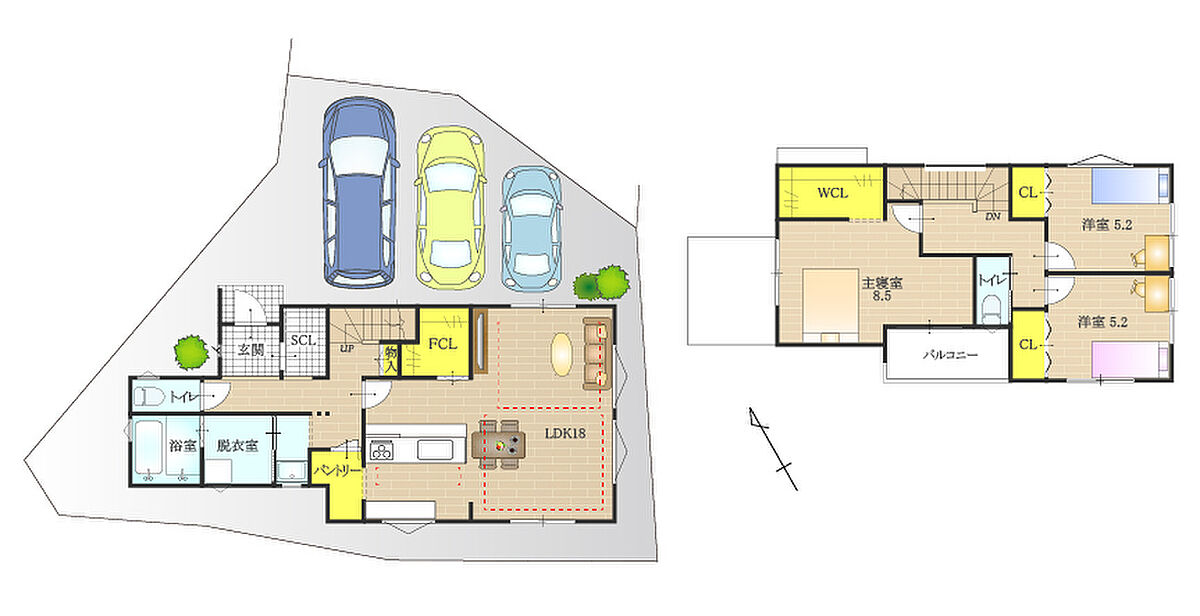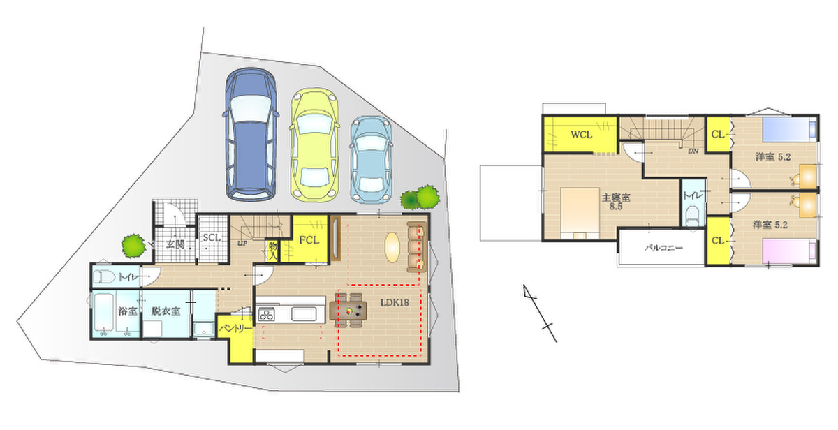 - ※完成予想図やCG合成画像は、門塀・植栽・庭・外観等、実際とは多少異なる場合があります。