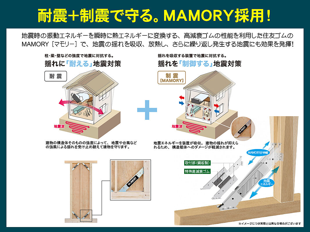 制震ダンパーや、HEAT20G2グレードの断熱、全熱交換気システムの採用により、さらに安心と快適をプラスしました!