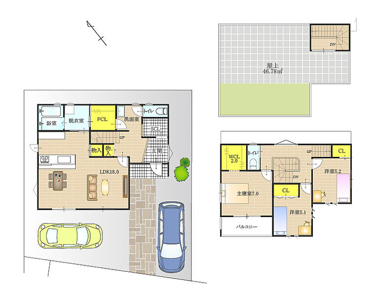 - ※完成予想図やCG合成画像は、門塀・植栽・庭・外観等、実際とは多少異なる場合があります。
