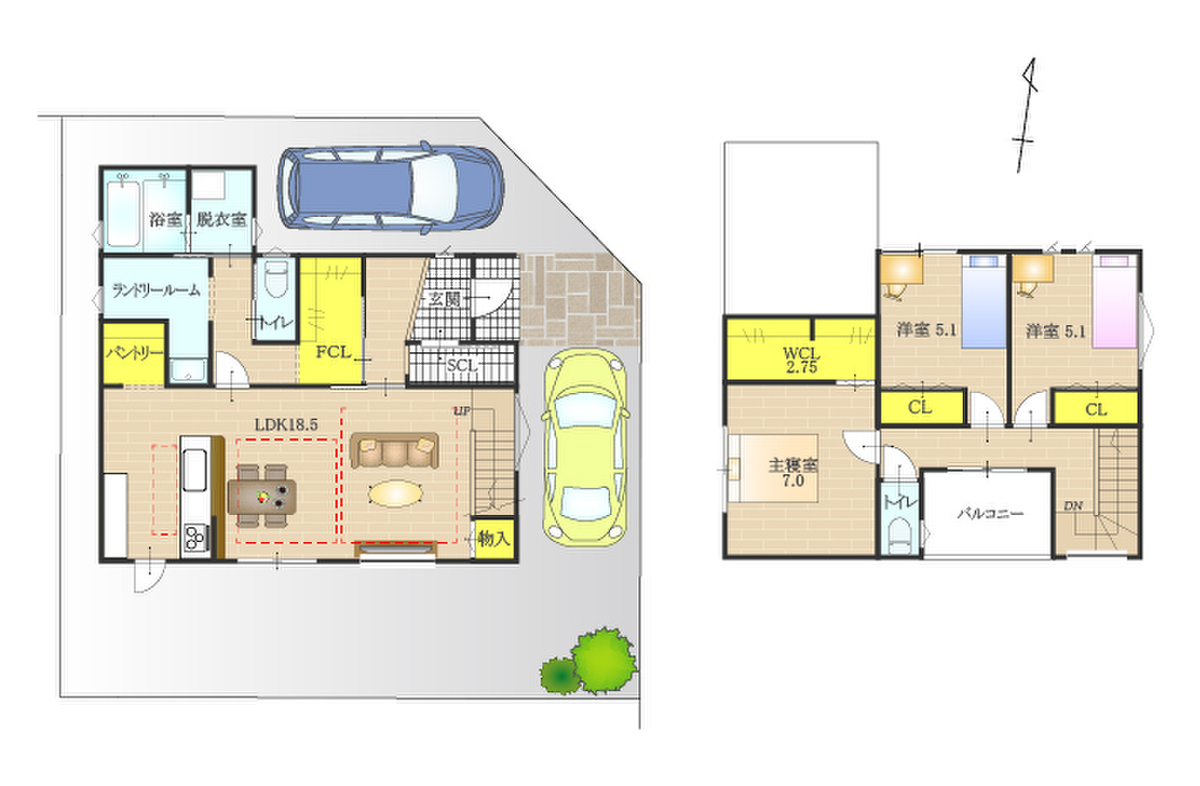 - ※完成予想図やCG合成画像は、門塀・植栽・庭・外観等、実際とは多少異なる場合があります。