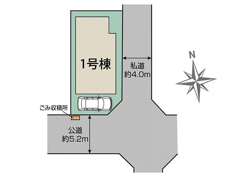 | 駐車場 | 1台 | 道路の幅員 | 南5.2m公道、東4.0m私道 |