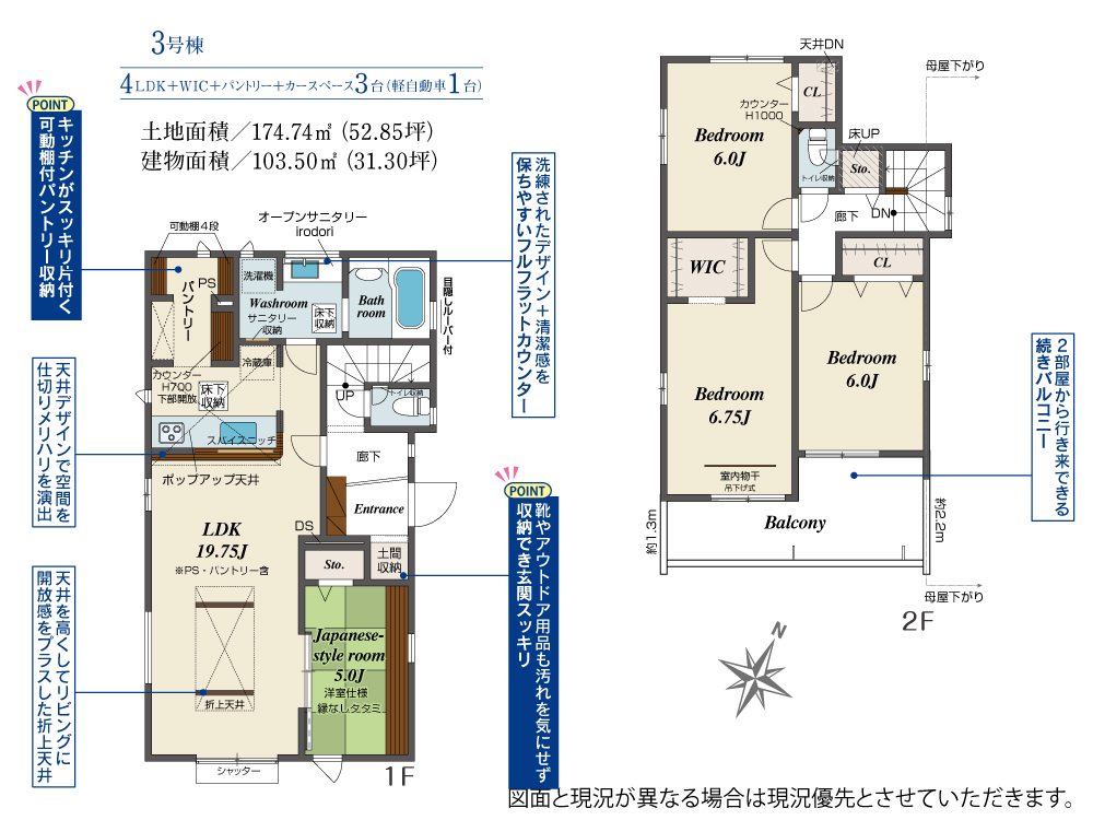 | 建物面積 | 103.50m2(約31.30坪)~104.28m2(約31.54坪) | 土地面積 | 155.88m2(約47.15坪)~174.74m2(約52.85坪) |