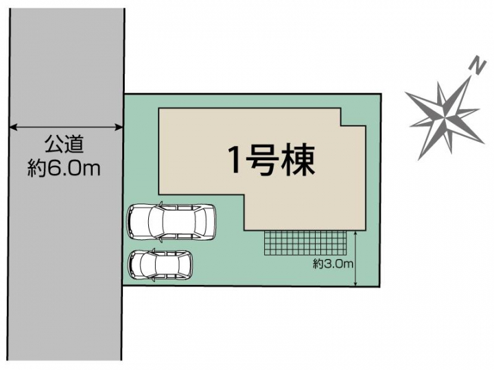 | 駐車場 | 2台 | 道路の幅員 | 南西6.0m公道 |