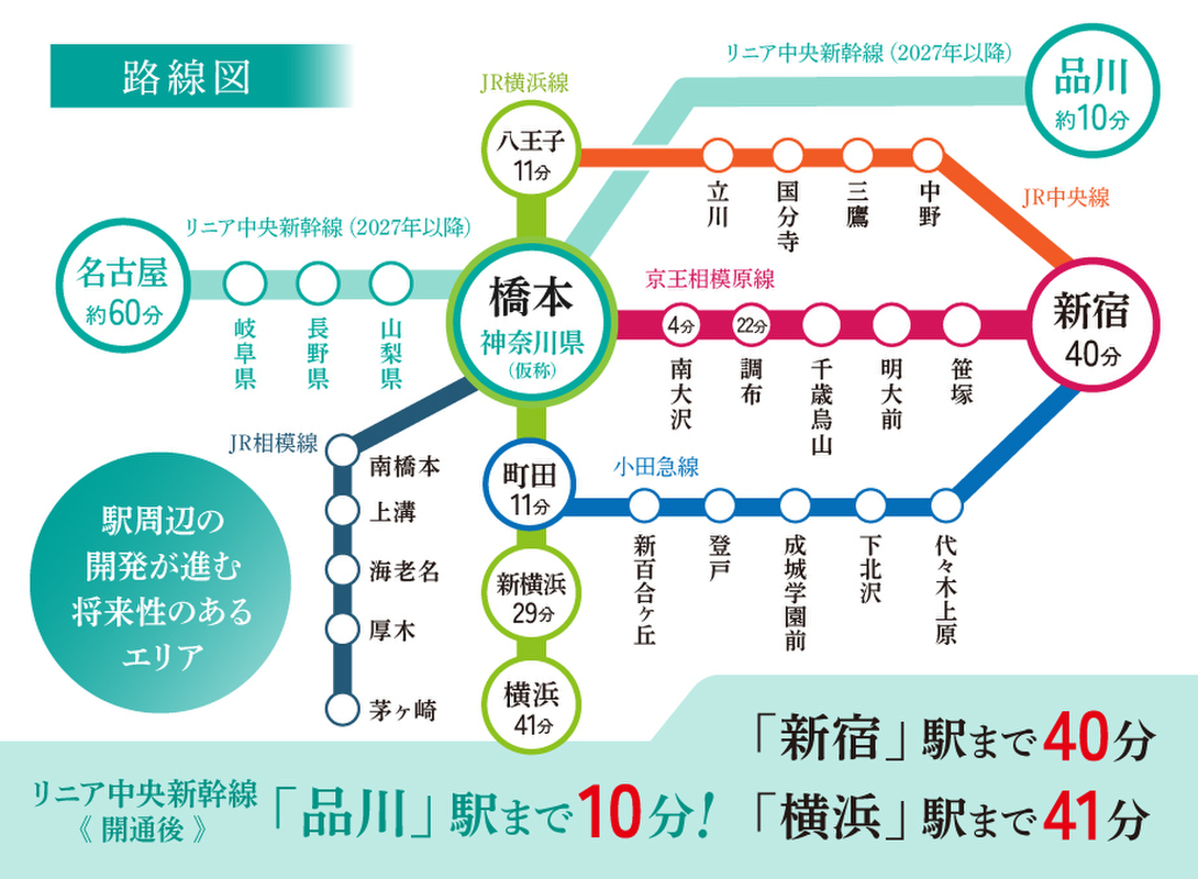 JR横浜線「橋本」駅 バス22分 徒歩1分 JR相模線「橋本」駅 バス22分 徒歩1分 京王相模原線「橋本」駅 バス22分 徒歩1分 |