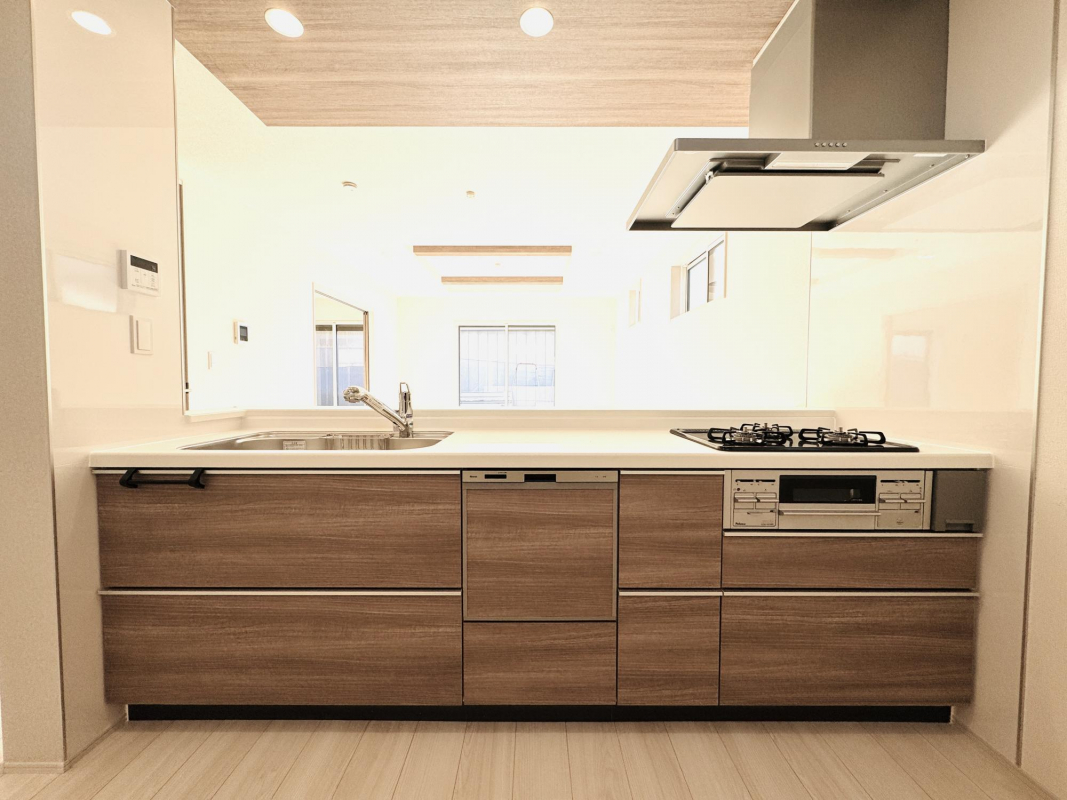 ■キッチンは、食洗器をはじめ、浄水器一体型水栓・三口コンロなどの機能が配備されています。