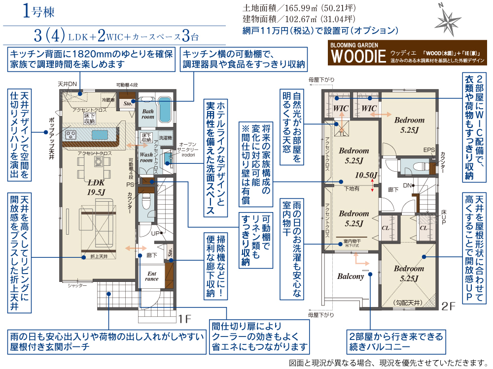 | 建物面積 | 100.61m2(約30.43坪)~102.67m2(約31.05坪) | 土地面積 | 165.99m2(約50.21坪)~166.54m2(約50.37坪) |