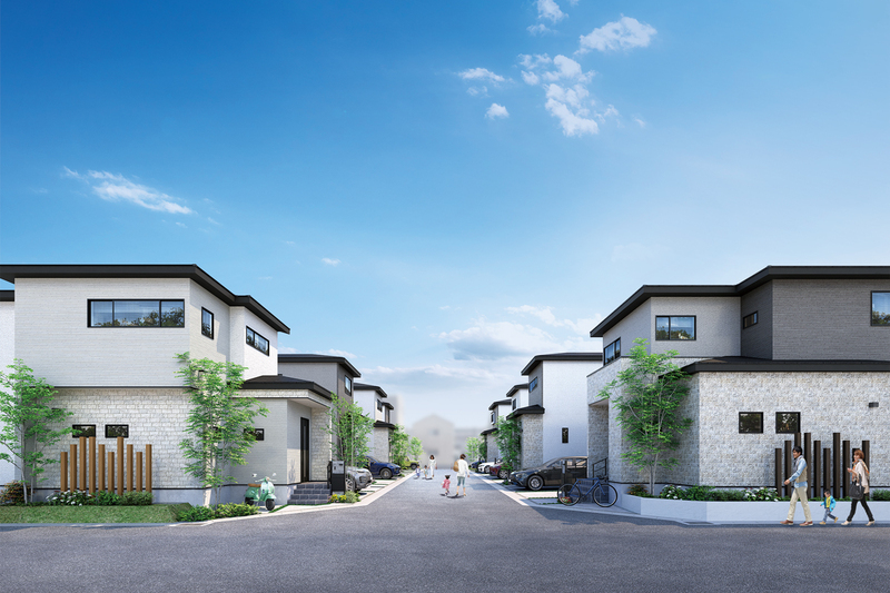 ・石目調のナチュラルな質感が心を和ませる和モダンの街並み