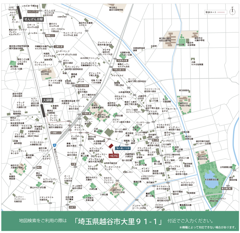 - 東武伊勢崎線「大袋」駅 徒歩15分東武伊勢崎線「北越谷」駅 バス17分 弥十郎バス停 徒歩5分東武伊勢崎線「せんげん台」駅 バス8分 しらとり保育園前バス停 徒歩13分