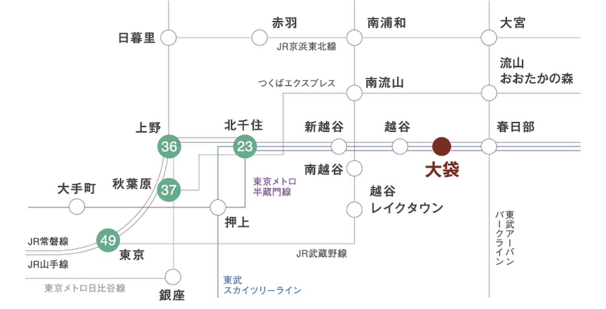 ◆自然と都市が共存する越谷大袋エリア