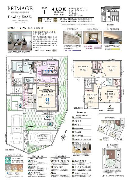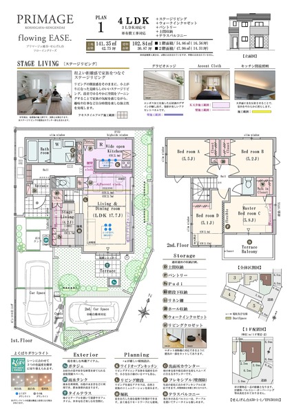- 4LDK(3LDK対応可※有償工事)+ステージリビング+ウォークインクロゼット+パントリー+階段下土間収納+リネン庫+テラスバルコニー ~ 5LDK(4LDK対応可※有償工事)+ウォークインクロゼット+パントリー+土間収納+テラスバルコニー