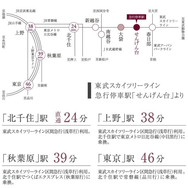 - 東武伊勢崎線「せんげん台」駅 徒歩19分東武伊勢崎線「せんげん台」駅 バス9分 いきいき農園バス停 徒歩3分東武伊勢崎線「北越谷」駅 徒歩52分