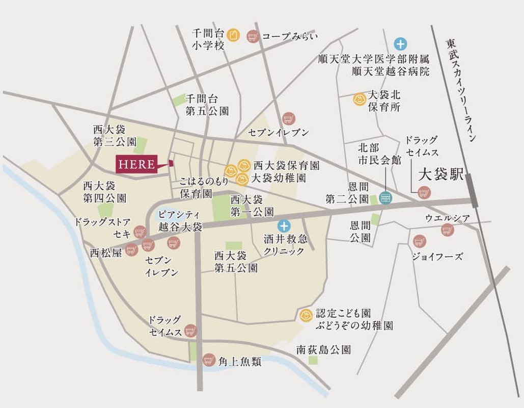 - 東武伊勢崎線「大袋」駅 徒歩22分東武伊勢崎線「せんげん台」駅 バス8分 第五公園入口バス停 徒歩2分東武伊勢崎線「せんげん台」駅 徒歩24分