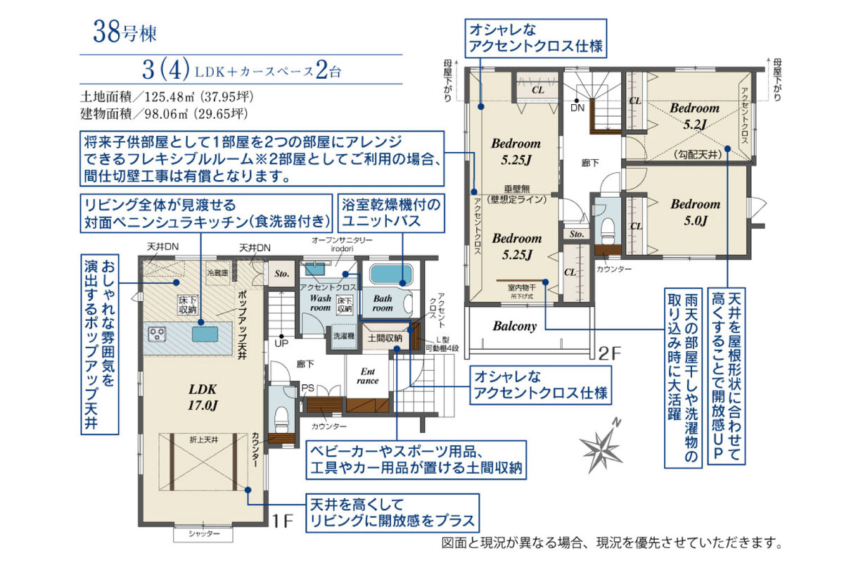 38号棟 間取り 3LDK→4LDKに間取り変更 価格 4080万円 建物面積 98.06m2 土地面積 125.48m2 -