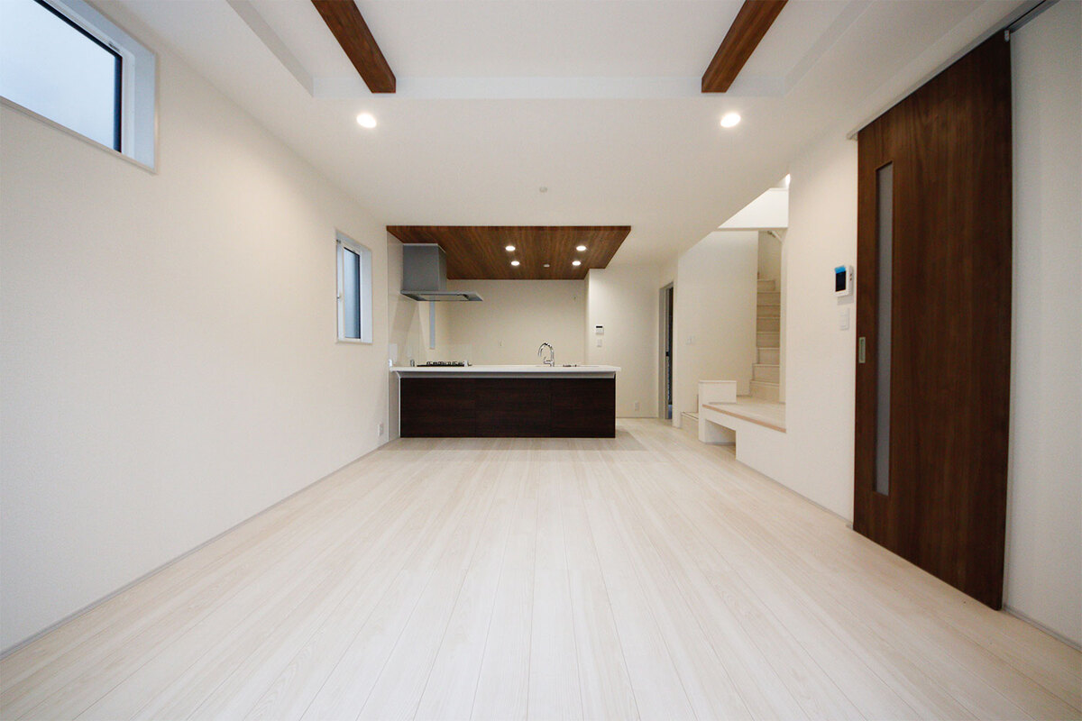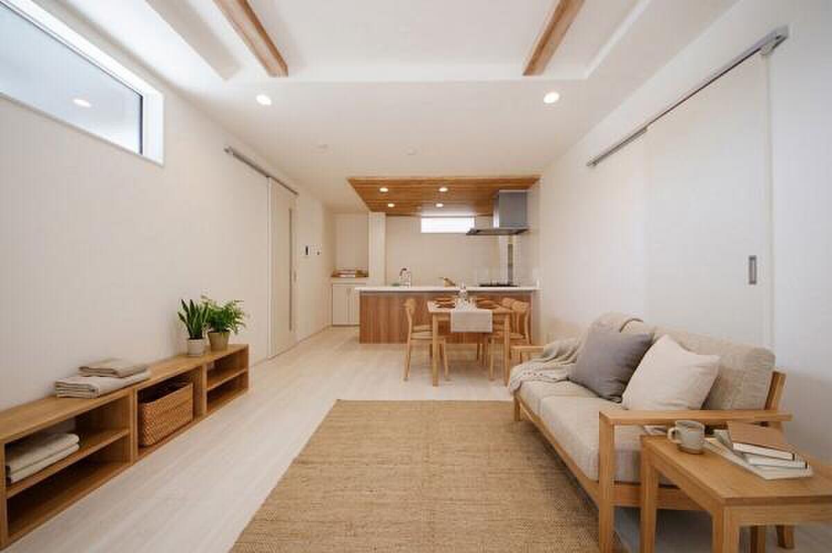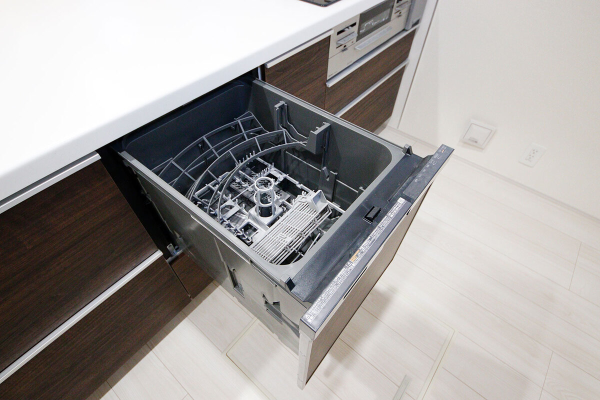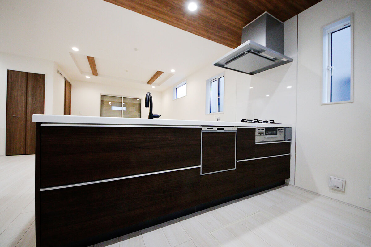 ■折上げ天井のLDKやフルオープンキッチンなど、開放感と使いやすさを両立した設計も魅力。食洗機・浄水器付きで家事も快適!