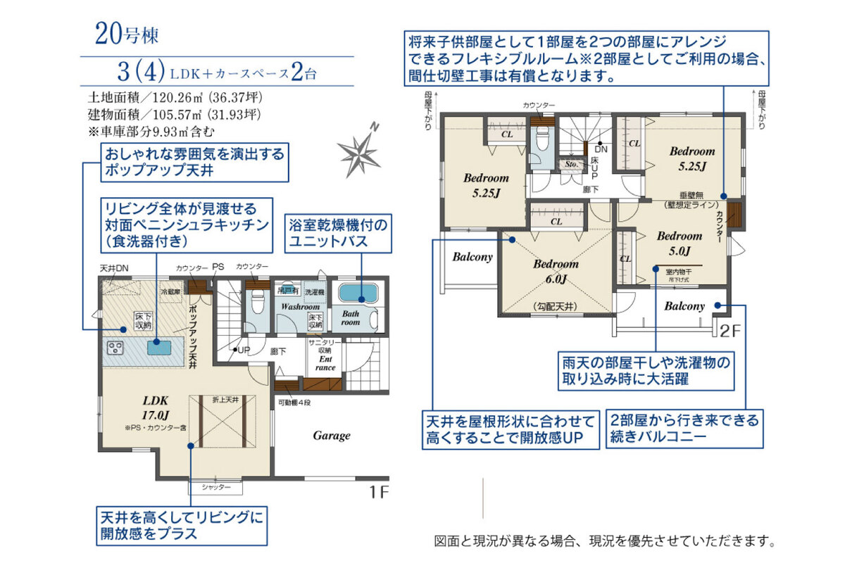 20号棟 間取り 3LDK→4LDKに間取り変更 価格 4080万円 建物面積 105.57m2 土地面積 120.26m2 -